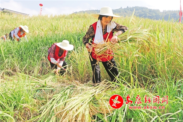 9月3日,平利縣長(zhǎng)安鎮(zhèn)中原村“旱改水”項(xiàng)目區(qū)的130畝水稻相繼成熟并進(jìn)入收割期。吳永杰 攝