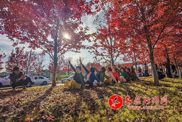 安康富強飛機場大道的紅葉進入紅葉最佳觀賞期,每天有數(shù)百人在這里觀賞,拍照和打卡,留下紅葉的美好瞬間。(圖文:陳德模)
