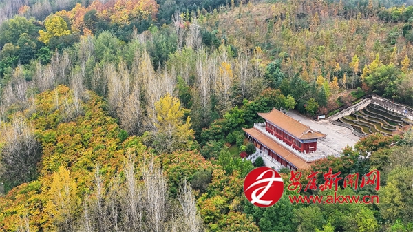 初冬時(shí)節(jié),漢陰的龍崗公園內(nèi)外層林盡染,與人文景觀交相輝映,構(gòu)成一幅流動(dòng)的山水畫卷。公園地勢連綿,園內(nèi)步道蜿蜒,亭臺(tái)錯(cuò)落。從空中望去,茂密的林木披上了紅、黃、橙交織的花衣裳,與常綠樹種相互點(diǎn)綴,猶如大地的調(diào)色盤。山頂?shù)凝垗忛w巍然屹立,在金黃烏柏與如火楓葉的簇?fù)碇,成為整個(gè)公園的視覺焦點(diǎn)。登閣遠(yuǎn)望,漢陰縣城全貌盡收眼底,月河如帶穿城而過,與秋日晴空共同勾勒出“水天一色”的壯美圖景。(通訊員 文婷 徐歡) 7Mq安康新聞網(wǎng)