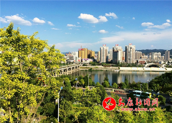 夏至前后,安康天氣持續(xù)晴好。一河二岸、江南江北,在藍(lán)天白云的映襯下,處處呈現(xiàn)出靚麗硬朗的現(xiàn)代氣息。(趙波 攝Cba安康新聞網(wǎng)