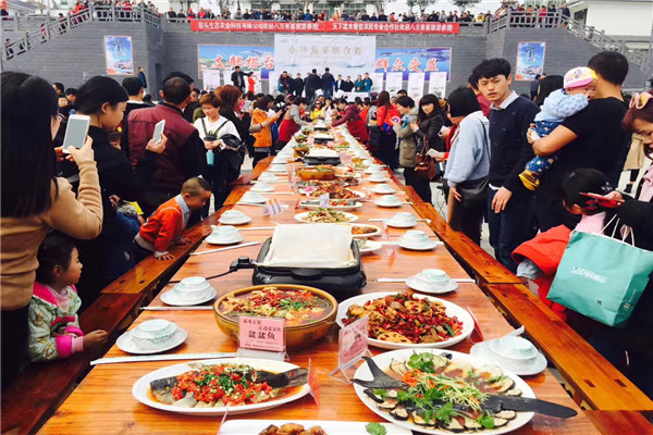游古鎮(zhèn)、觀花海、品魚宴,在油菜花盛開的古鎮(zhèn)初春感受陜南特色文化是周末度假的不錯選擇。此次旅游文化節(jié)還原了古鎮(zhèn)延續(xù)百年的長桌宴春季祈福儀式,成為眾多吸睛活動中的特色。春福長桌宴是流水古鎮(zhèn)居民延續(xù)百年的古老祈福儀式,每逢春季到來,鎮(zhèn)上居民挨家挨戶將長桌擺成一排,端上自家最好的菜肴,共同品嘗美食,祈福來年平安和豐收。旅游文化節(jié)此次將邀請游客與古鎮(zhèn)居民一起圍爐品長桌宴,也將給游客帶來非凡的旅游記憶。同時(shí),以烹飪瀛湖魚為主題的魚宴擂臺賽也在此次旅游文化節(jié)亮相,數(shù)名陜南知名廚師同場競技,讓游客品嘗魚、感受魚文化,同時(shí)推出瀛湖魚宴行業(yè)標(biāo)準(zhǔn),給游客打造更健康安全的旅行體驗(yàn)。來自西安的楊女士告訴記者,流水古色古香,魚宴也是美輪美奐,感覺到這里,是視覺和味覺上的極致體驗(yàn)。