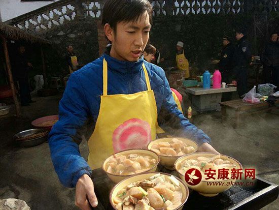 ■ 黃平安“庖湯”, 也有人寫(xiě)作“泡湯”!芭轀辈皇恰俺燥埡葴,也不是“溫泉泡澡”,它是陜南農(nóng)家冬季殺年豬時(shí)用現(xiàn)殺的豬肉為主料做成的宴席,農(nóng)家用它宴……