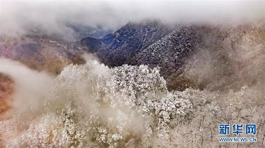 雪后初霽的鬼谷嶺國(guó)家森林公園(11月8日無人機(jī)拍攝)。 新華社記者陶明攝