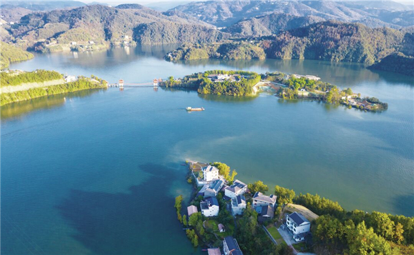 □ 唐玉林瀛湖是一幅畫,有島有水,有橋有船,有湖有亭。有石有樹。天是藍(lán)的,水是綠的,山是青的,小島匍匐水上,像琵琶,像樹葉,像一個(gè)調(diào)皮可愛(ài)憨態(tài)十足的嬰孩……