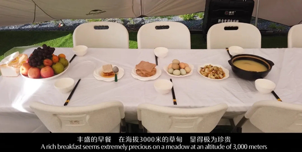 豐盛的早餐,在海拔3000米的草甸,顯得極為珍貴。彩色雞蛋、蜂蜜面包、生態(tài)烤腸、草甸稀飯多種選擇,可以滿足不同的口味,激發(fā)著多情的味蕾。RFf安康新聞網(wǎng)