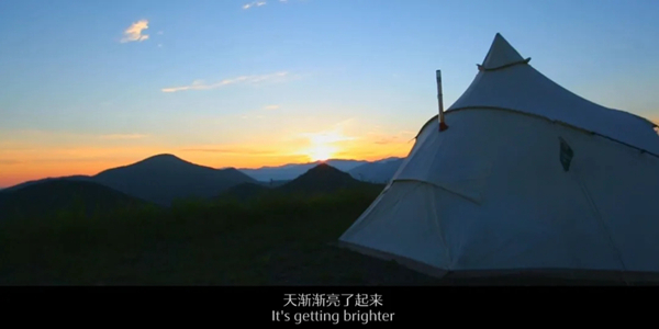 天漸漸亮了起來,越過重重山脈的陽光 映紅了云層,照亮了山谷,催醒了沉睡的動物,一頂頂帳篷像隆起的蘑菇 生⻓在云端之上。RFf安康新聞網(wǎng)